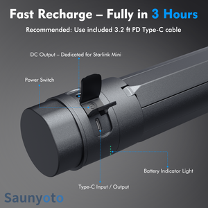 Saunyoto Starlink Power Stand – More than just a power bank, it's the centerpiece of your mobile connectivity. Cut the cord, declutter your space, and unlock true power freedom.